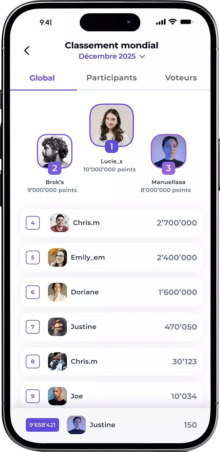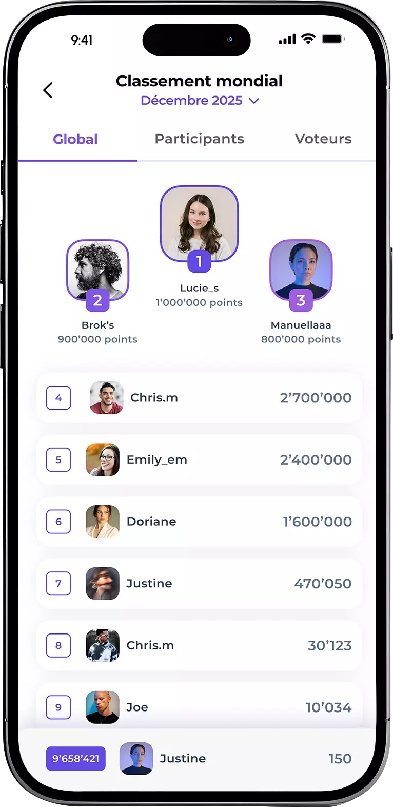 Mesurez-vous aux meilleurs et suivez l’évolution des scores en temps réel. Le classement global rassemble l’élite de la communauté : chaque vote, chaque victoire et chaque interaction vous rapproche de la première place. Ne vous contentez pas de participer, imposez votre style et voyez jusqu’où votre talent peut vous mener. La course pour le sommet est lancée, serez-vous celui qui mène la danse ?