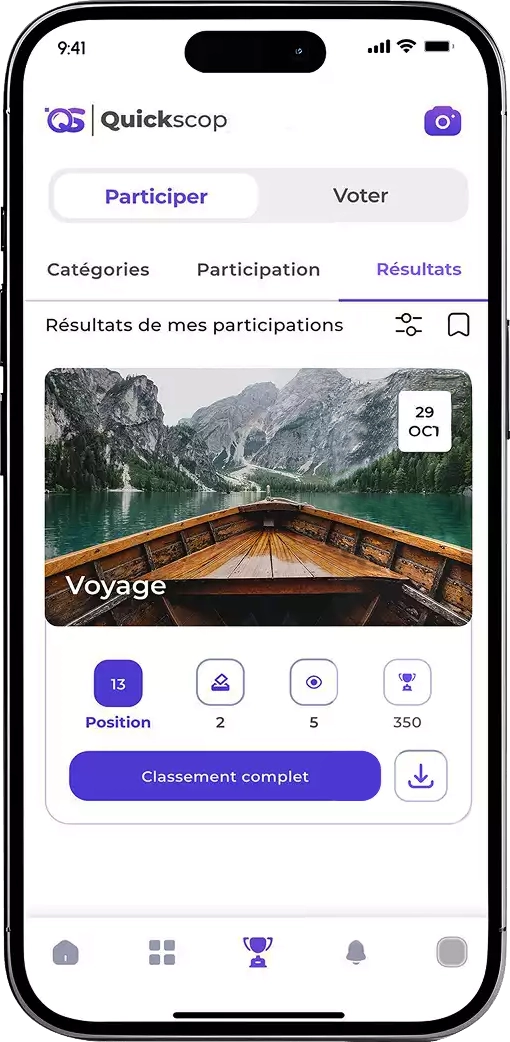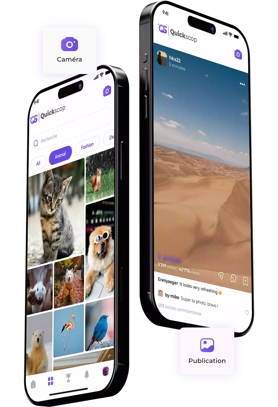 QuickScop est une plateforme sociale de concours d’images où la créativité et la participation sont récompensées. Ici, aucun algorithme ne décide à ta place : ce sont les votes des utilisateurs qui déterminent la visibilité.